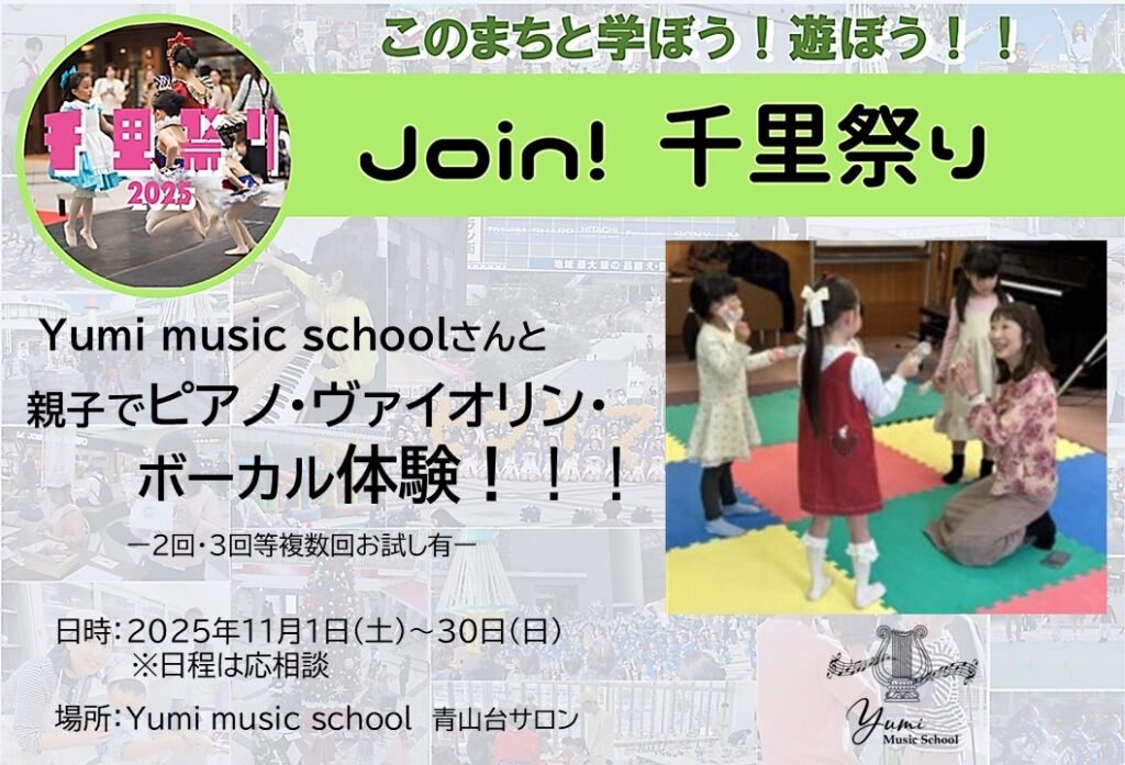 2025年11月1日 (土)〜 30日 (日) 開催: 【Yumi music school】さん、親子でピアノ・ヴァイオリン・ボーカル体験!